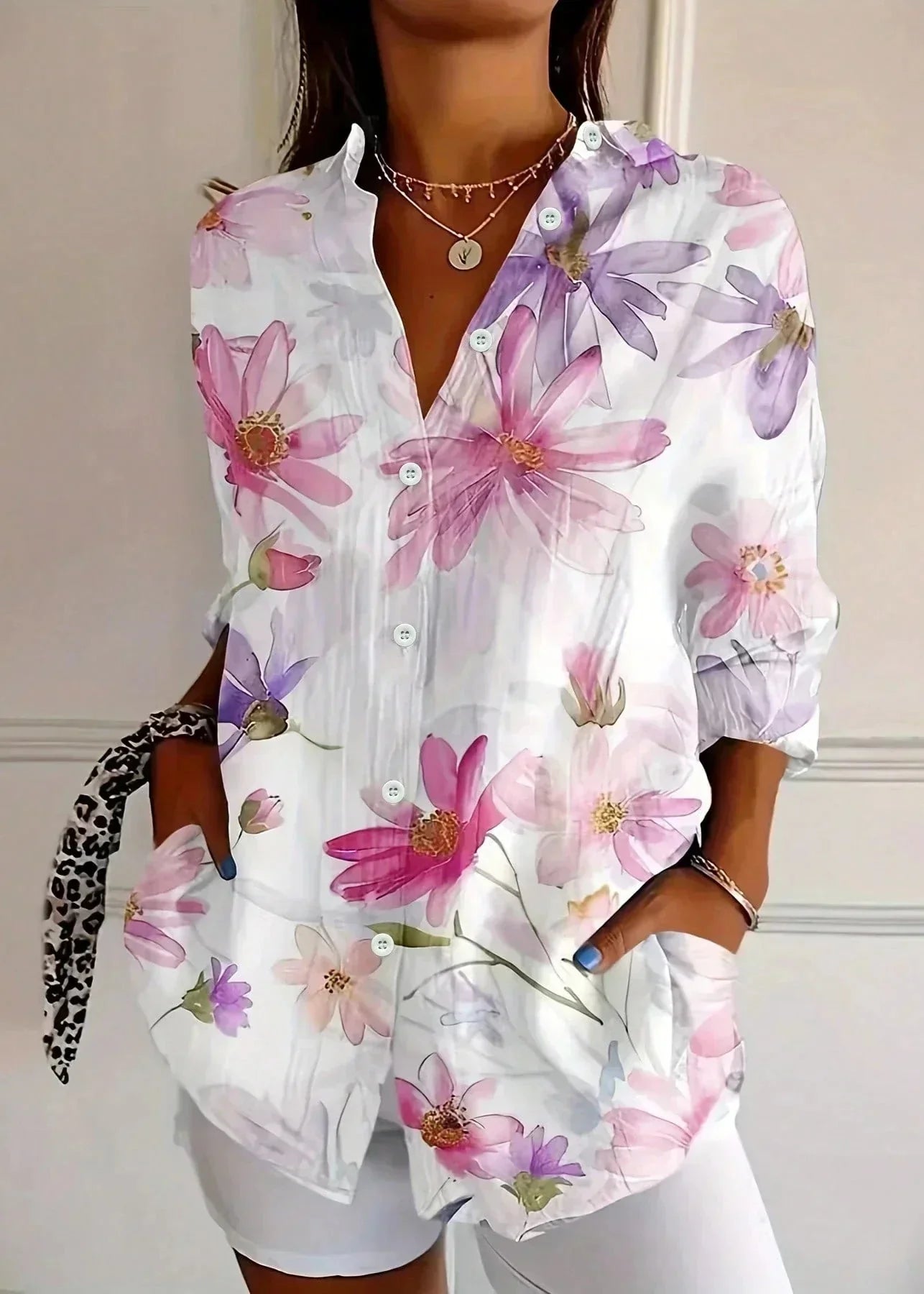 The colorful print brings brightness while keeping a refined feel.
